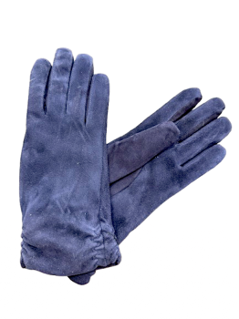 Dámské zimní kožené rukavice s kašmírovou podšívkou z modrého broušeného nubucku.