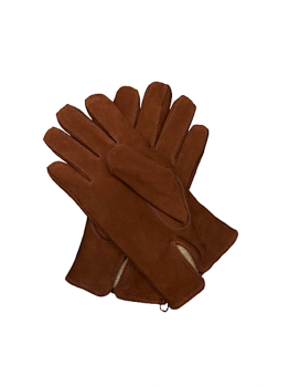 Pánské zimní kožené rukavice klasického stylu vyrobené z hnědého nubcku, prošité šedou nití.
