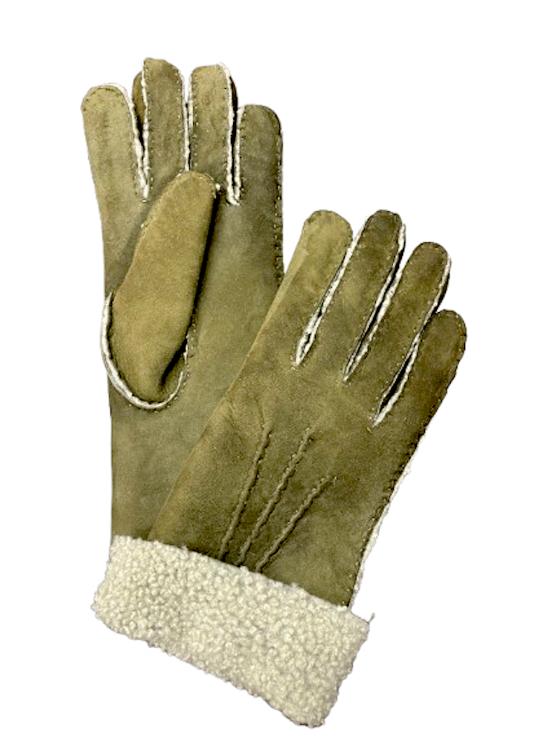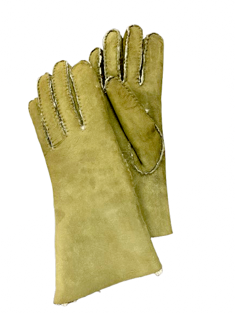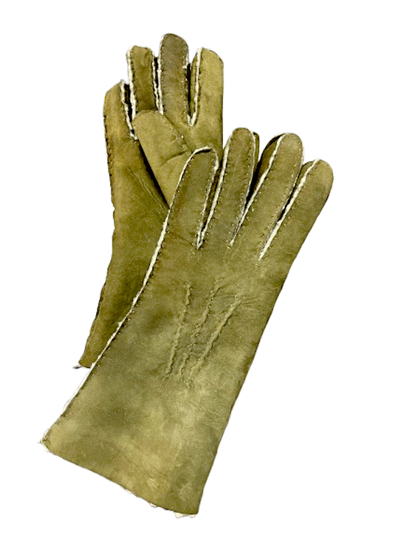 Kožešinové dámské rukavice v olivově zelené barvě ručně šité.