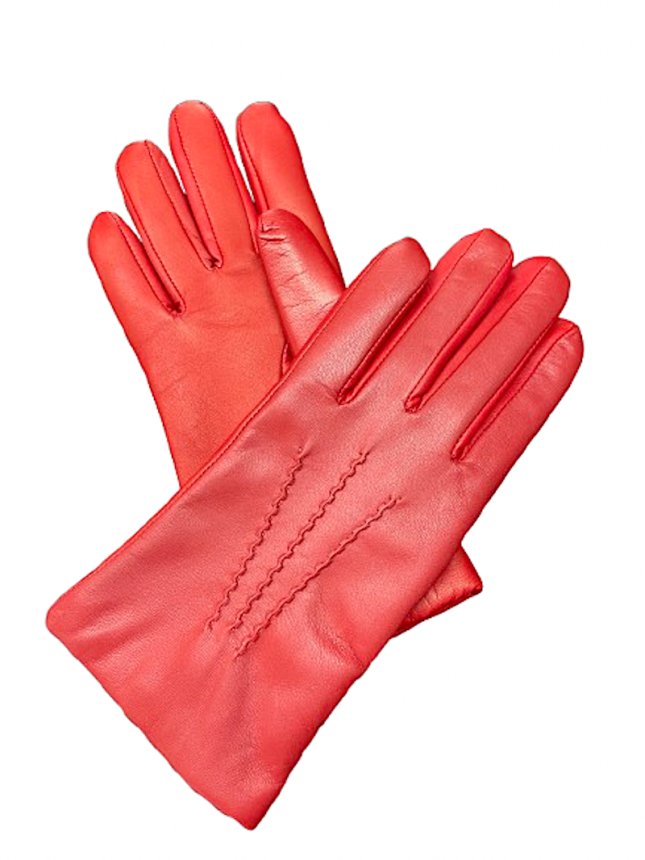 Dámské zimní kožené rukavice s vlněnou podšívkou , klasické řecká výšivka. Červená jehnětina.