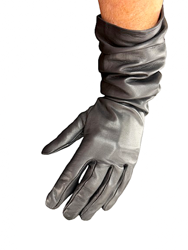 Model jse situován pro delší prsty. Dálka rukavic loket - ohyb. Celková délka rukavic je 45 cm , obvod kolem předloktí 27 cm.