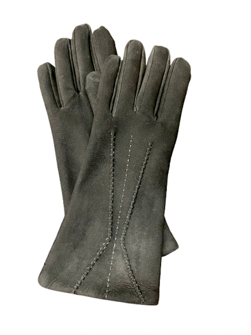 Dámské kožené rukavice s broušeného nubucku, černé barvy s hřejivým kašmírem. Ruční ozdoba.