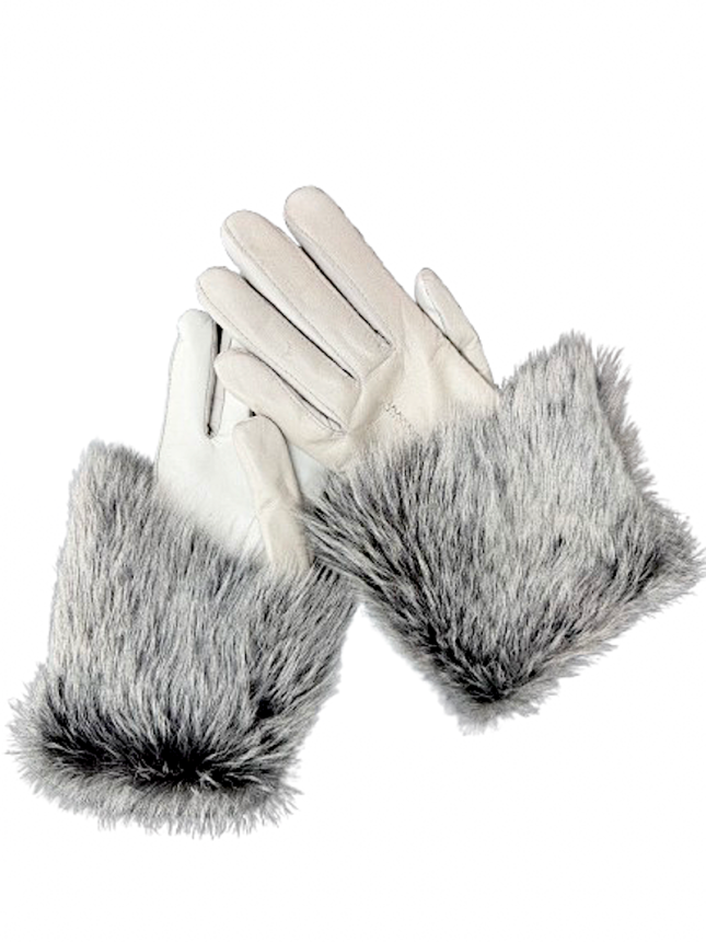 Dámské luxusní zimní kožené rukavice se širokou kožešinovou manžetou 100% Toscana kožešina ve sříbřité barvě s kombinací extra jemné kozlečinky. Podšívka kašmír.