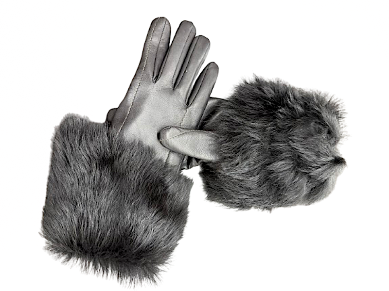 Dámské luxusní zimní rukavice s manžetou Toscana. Černé barvy jehnětina v kombinaci s kožešinou odstínu černé. 100 % přírodní materiál,uvnitř kašmír.