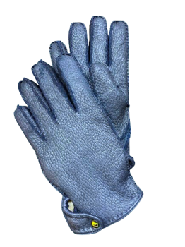 Vyrobeny jsou z Peccary, navy blue - marine prošité uni nití, rozparek z malíkové strany s ozdobnou patkou na druk. Krátké k zápěstí ruky. Ručně šité a zápaští je prošité Royal stehem.