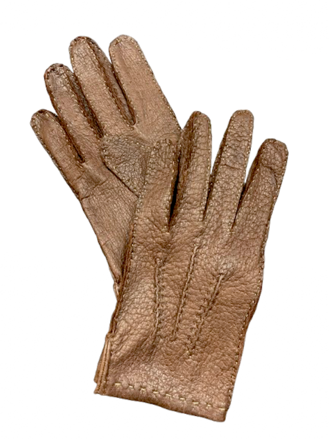 Vyrobeny jsou z Peccary, marron barvy prošité světlejší nití, rozparek na straně, zdobení českou ruční šnůrkou. Krátké k zápěstí ruky.