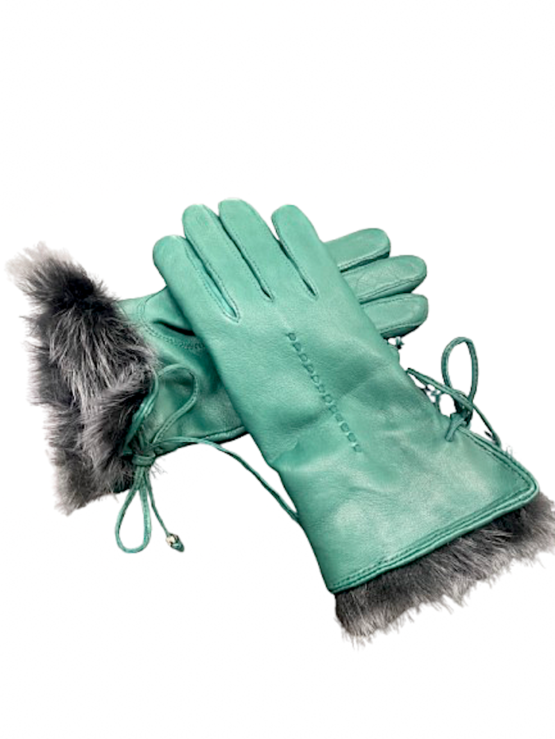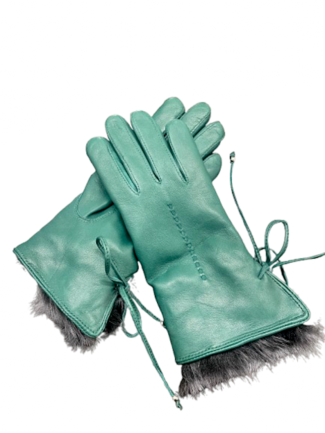 Luxusní dámské kožené rukavice s Toscana manžetou a průpletou, uvnitř kašmír. Kožešina z vnitřní strany manžety otáčecí. Hřbet ruky zdobí průpleta.