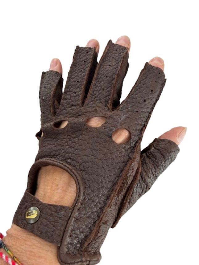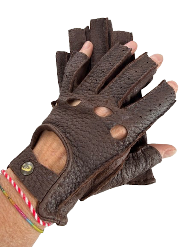 Ušlechtilé luxusní Peccary dámské rukavice v klasickém modelu šoférky s otvory na klouby na ruce.